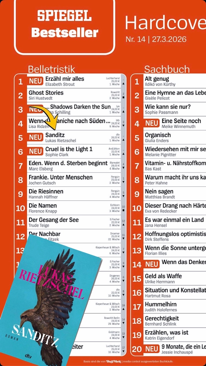 Wir feiern einen Bestseller: Lukas Rietzschel ist mit seinem Roman „Sanditz“ auf Platz 5 der SPIEGEL-Bestsellerliste eingestiegen.
